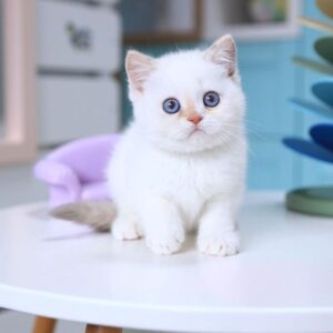 Los gatitos British Shorthair son reconocidos por su apariencia robusta, su pelaje denso y aterciopelado, y su carácter tranquilo y equilibrado. Con su rostro redondeado, ojos grandes y expresión dulce, esta raza combina elegancia clásica con una personalidad calmada y afectuosa.