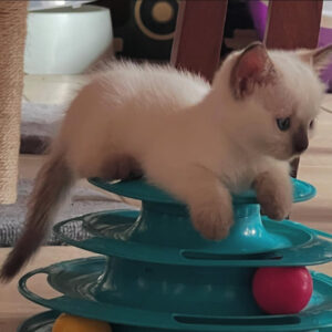 Nuestros gatitos siameses son la combinación perfecta de belleza, inteligencia y una profunda conexión emocional. Reconocidos por sus llamativos ojos azules, su pelaje fino y elegante, y su personalidad expresiva, los gatitos siameses son altamente sociables y crean fuertes vínculos con sus dueños.